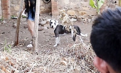 MY BIGTITS NEIGHBOR WAS WATERING PLANTS AND I Plow HER OUTDOORS