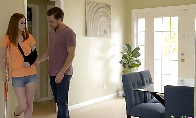 Nasty stepbrother enjoys fucking sweet looking red haired teenie Pepper Hart