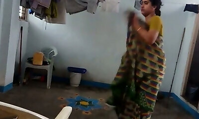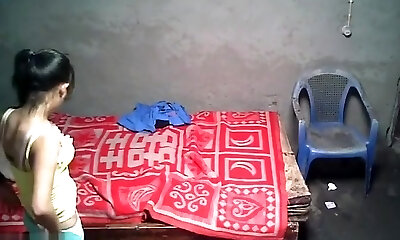 Indian unexperienced housewife was caught on hidden cam while undressing