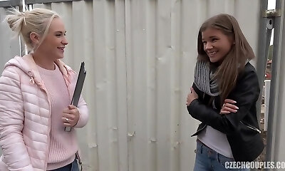 Blonde And Brunette Teens Have An Outdoor Foursome