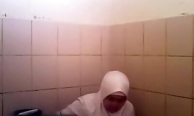 Arab dame goes pee in a public toilet