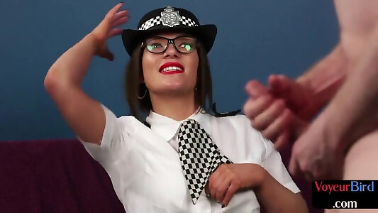 Spycam police Cougar in uniform seeing masculine masturbation