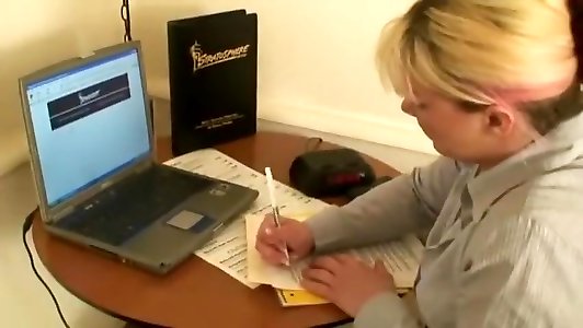 Your Manager: Jeny Smith plays the role of the boss. High high-heeled shoes, stockings and mini micro-skirt.