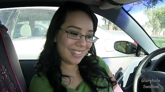 Nymphomaniac living nextdoor Riley Reid gives a bj in the doorway and invites to visit her vagina