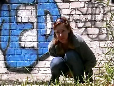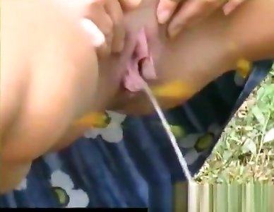 nippleringlover pissing in bottle outdoors - pierced slit, enormous cooch rings - pierced bumpers, opened up nip piercings