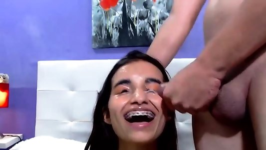 Nice teenage with glasses and braces humped rock hard and facialized