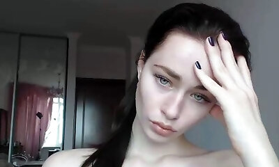 Horny solo model with natural milk cans demonstrating her hot ass while masturbating