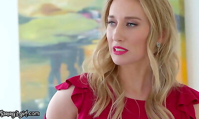 Elegant Blonde MILF seduced a man for anal spooning on sofa