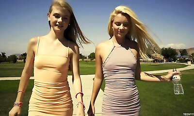Megan Marx and Luna Cute share a jizz-shotgun with each other