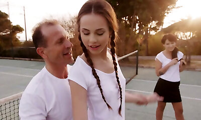 Ultra-kinky trainer fucks duo of fantastic slim girlies after nice tennis game
